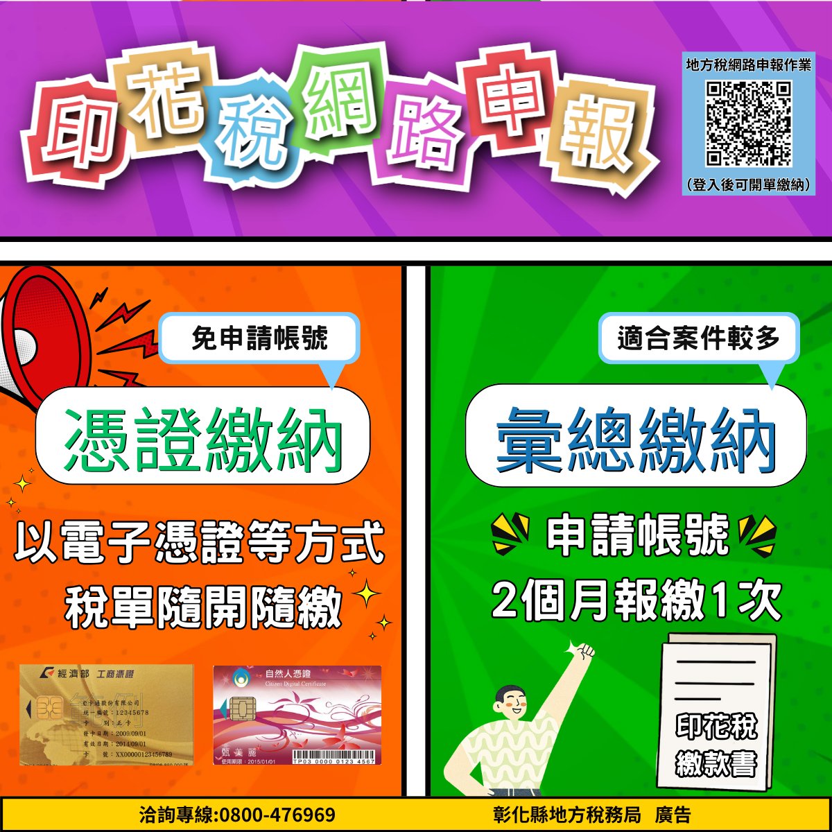 轉知彰化縣地方稅務局租稅宣導(2025/12/31)印花稅網路申報多元繳款,省時、簡單又便利